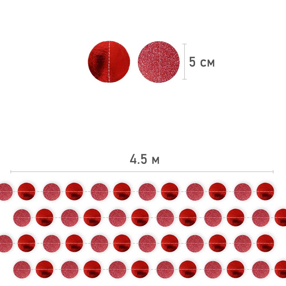 Гирлянда "Кружочки" блеск/металлик 5 см х 4,5 м, Красный