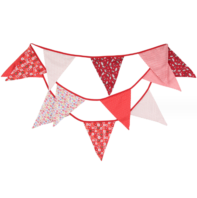 Гирлянда состоит из 12 флажков. Расстояние между флажками - 6 см, общая длина составляет 4 м.