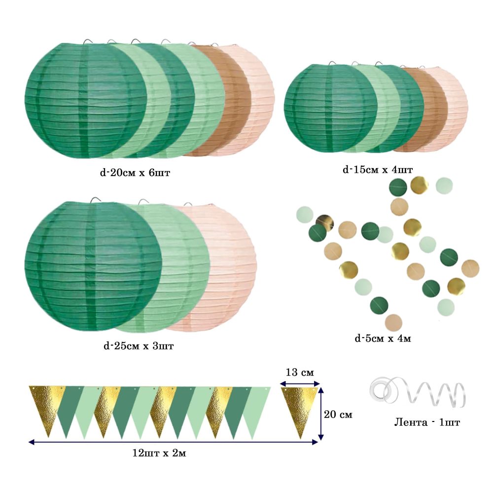 Бумажные подвесные фонарики, 14 шт: