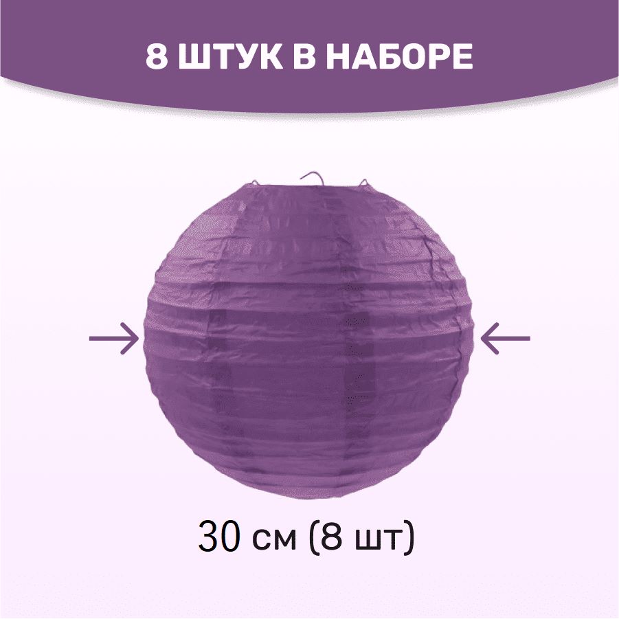 Комплект подвесные фонарики 30 см х 8 шт, фиолетовый