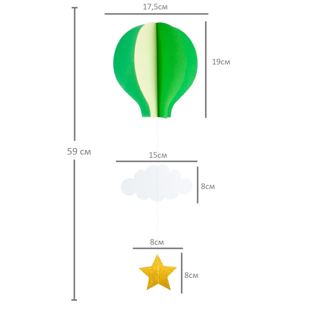 Подвеска Воздушный шар 59 см, айвори+зеленый