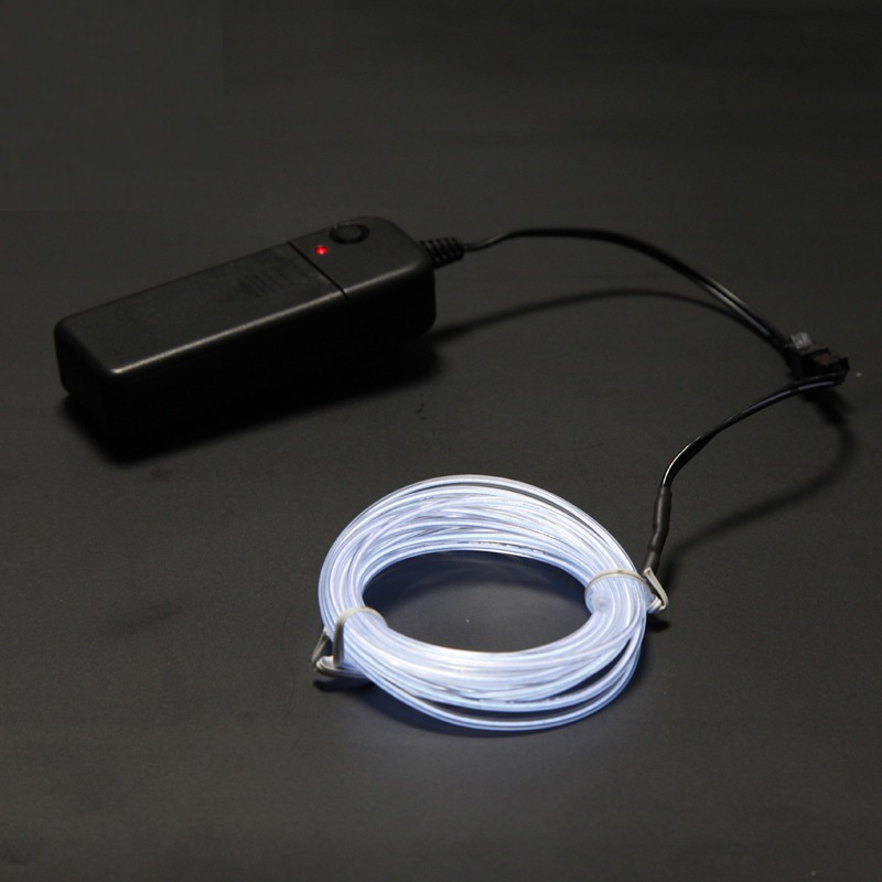 В комплекте с EL проводом, длинной 3 метра,  идет бокс с питанием от батареек, что позволяет его применять где угодно, даже на улице.  Работает от 2-х батареек 2АА (батареек в комплекте нет).
