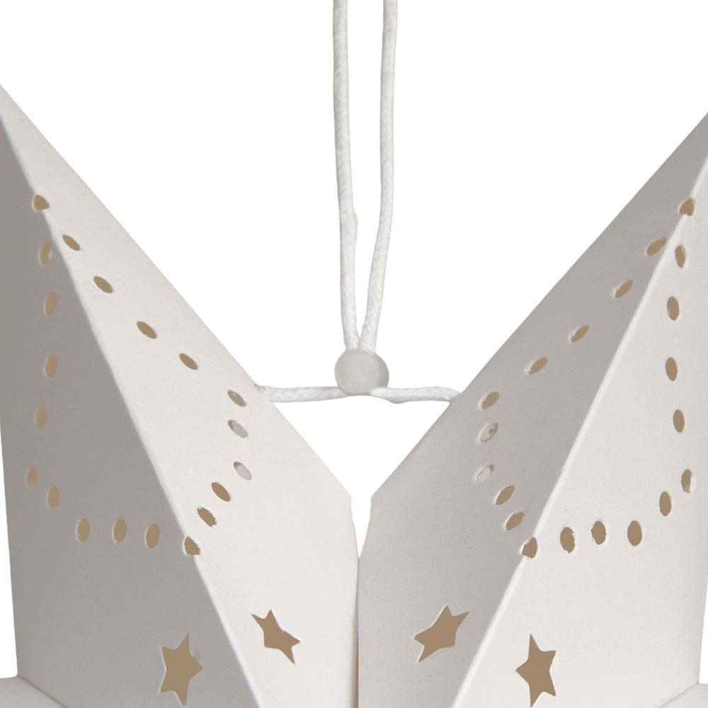 Аккуратно расправьте лучи, чтобы придать звезде идеальную объемную форму, затем зафиксируйте встроенным шнуром для подвеса.